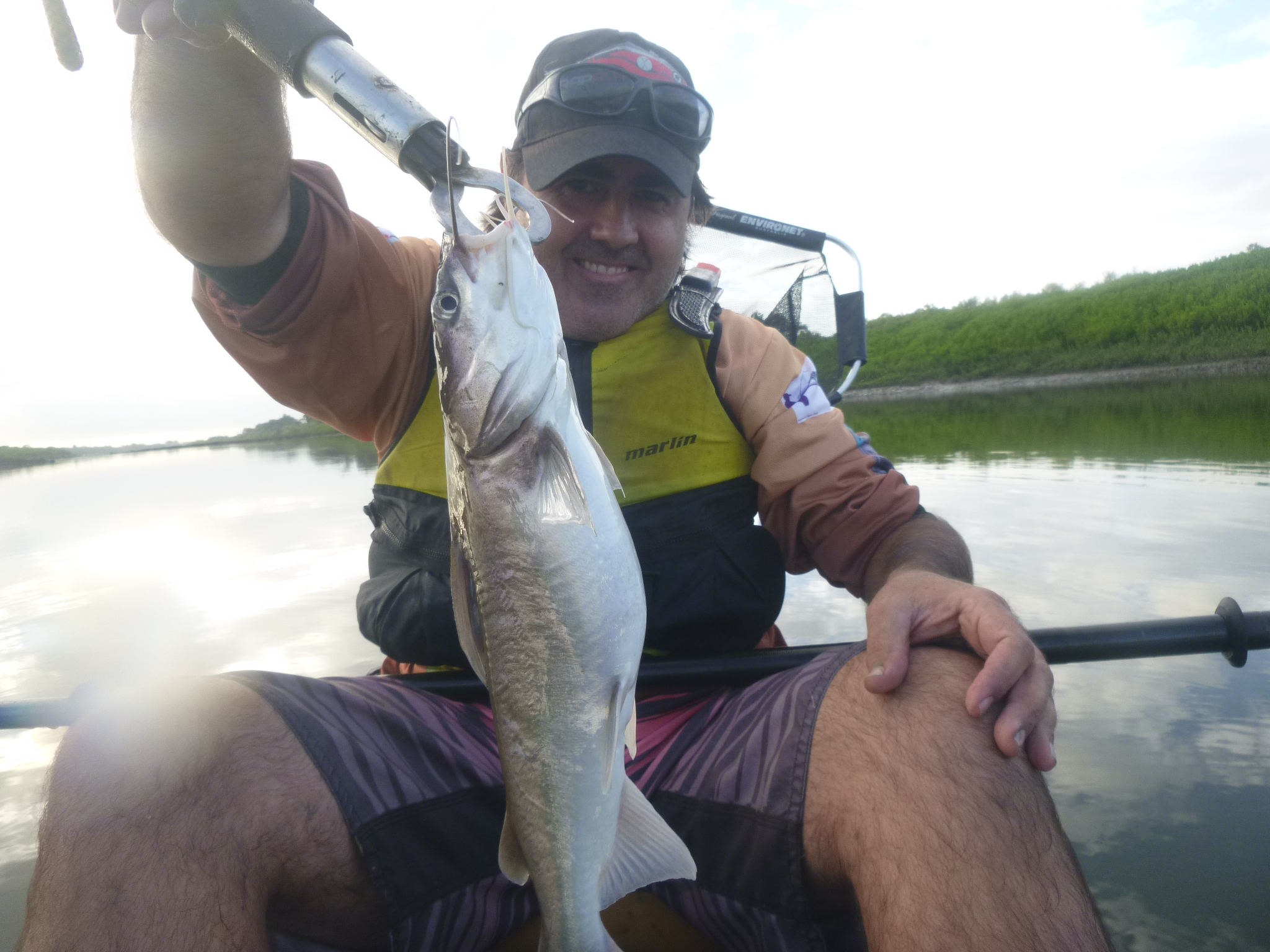 There was not much action to speak of during the first hour, a couple of large fish breaking the surface and a few large mullet jumping. So I decided to bait up one of my three rods with some squid to see what I could conjure up, meanwhile I threw my Rapala skitter pop around trying to entice a strike from any quality fish lurking beneath the glassy surface. My little Shimano with the squid bait screamed as a good fish took a solid first run, I called it early as a Catfish and my prediction was correct with a 30cm (approx) Catfish getting a snapshot then its freedom.